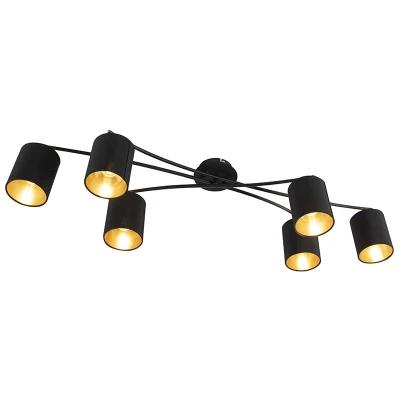 General description The QAZQA Modern Ceiling Light Black 6-Light - Lofty is a stylish and functional lighting solution for various indoor spaces. With its timeless black finish and golden interior shades, it creates a beautiful light effect, making it an eye-catching addition to your living room, hallway, dining room, office, kitchen, or bedroom. Technical specifications Length: 101 cm Width: 40 cm Mounting plate diameter: 9.7 cm Bulb holder: E14 Maximum wattage: 6 x 40 W Voltage: 220V/230V Protection class: IP20 Dimmable: Yes (dimmer not included) Light source: Exclusive Compatibility and accessories Compatible with incandescent, halogen, LED, and energy-saving bulbs Usage Ideal for creating a cozy atmosphere in various indoor settings Can be dimmed using an external dimmer Other information