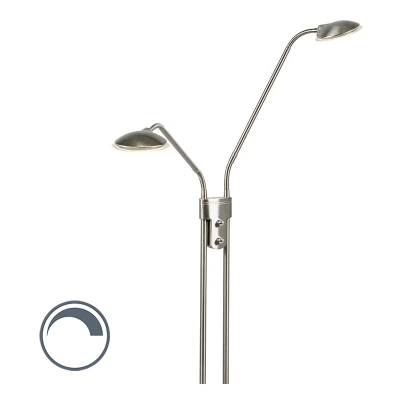 Qazqa Modern Floor lamp Steel I Nickel Matt Satin with Reading incl. LED Eva 2 Light Suitable for Living Room Bedroom
