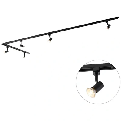 Qazqa Modern Rail System with 5 Spotbar I Spotlight Ceiling Bars 1 Phase Black Jeany Suitable for LED GU10 Way Light Steel Surface Mounted spotway