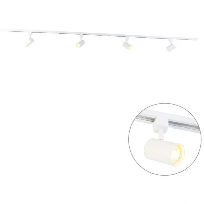 General description Change the way you light your spaces with the QAZQA Modern Track Lighting System with 4 Spotlights in White. This modern 4-light track system is perfect for adding ambiance in the dining room, providing functional light in the office, or illuminating your showroom. With a sleek design, Yade combines elegance with functionality, making it an ideal choice for various living spaces. Technical specifications Length: 210 cm Depth: 5.4 cm Height: 17.5 cm Material: High-quality aluminum and steel Bulb holder: GU10 Max wattage: 4 x 50 W Voltage: 230 V Connecting voltage: 220V/230V Protection class: IP20 Dimmable: Yes (dimmer not included) Lightsource: Exclusive Usage Suitable for various indoor spaces including: Hallway Office / Work area Kitchen Store / Showroom Living room Bedroom Other information