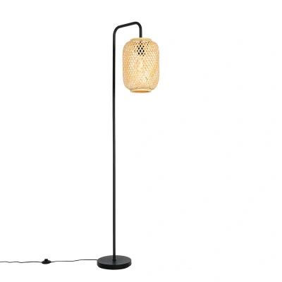 Qazqa Oriental Floor lamp Bamboo Yvonne Suitable for LED E27 1 Light Living Room I Bedroom