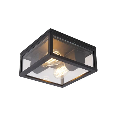 Qazqa Outdoor Industrial Ceiling Lamp I Flush Light Black IP44 Charlois Garden Design Suitable for LED E27 2 Aluminium