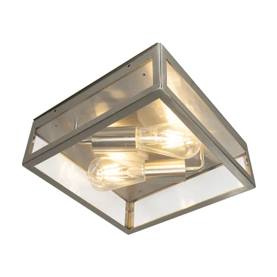 Qazqa Outdoor Modern Square Ceiling Lamp I Flush Light 2 Steel Nickel Matt Satin IP23 Rotterdam Garden Suitable for LED E27 Stainless li
