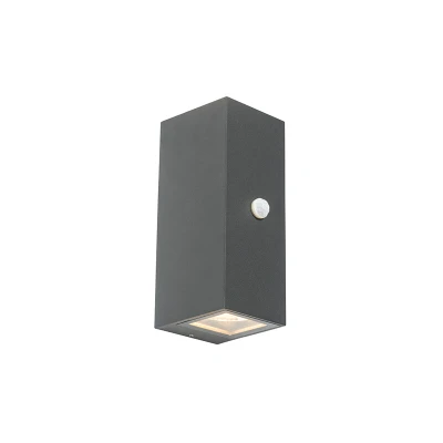 Qazqa Outdoor Modern Wall Lamp I Light Anthracite IP44 with Motion Sensor Baleno II Garden Suitable for LED GU10 2 Aluminium Security