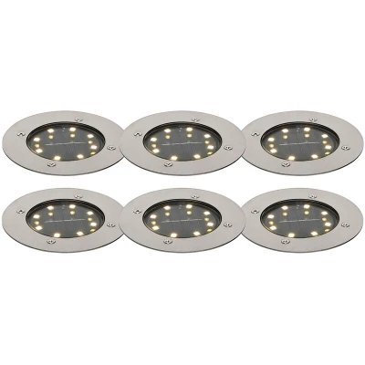General description Enhance your outdoor space with the Set of 6 Steel Ground Spotlights, featuring a sleek steel finish and made from high-quality aluminum. These modern spotlights not only provide a stylish touch but also deliver uniform and impressive lighting, making them a perfect addition to any garden or patio. Technical specifications Material: Steel Light source: Non-replaceable LED Power: Max 1 x 0.2 W Voltage: 220V/230V Brightness: 120 lumens Color temperature: 3000 Kelvin Protection class: IP65 Non-dimmable Type: Walk over / drive over lighting Other information