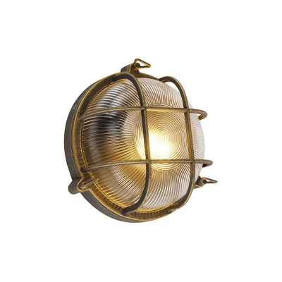 General description This dimmable wall and wall light in nautical style, named Noutica, brings a cozy nostalgic atmosphere to your home. With its heavy metal gold/brass housing and tough finish, it offers a strong, robust look. The glass features a relief that enhances the light effect, making it a perfect addition to any space. Technical specifications Height: 11 cm Length: 26 cm Width: 25 cm Mounting plate dimensions: Height 2.5 cm, Length 26 cm, Width 26 cm Bulb holder: E27 Max wattage: 1 x 60 W Voltage: 220V/230V Protection class: IP44 Dimmable: Yes (dimmer not included) Lightsource: Exclusive Compatibility and accessories Suitable for: Incandescent, Halogen, LED, Energy saving bulbs Note: Light source not included, please order separately Usage Suitable for damp rooms such as bathrooms Can be placed outdoors in the rain Ideal for outdoor lighting, garage, or basement Other information