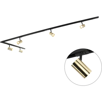 Qazqa Rail System with 5 Spots 1 Phase Black Gold Jeana Modern Suitable for LED GU10 Way Light Aluminium Surface Mounted spotway Bedroom I