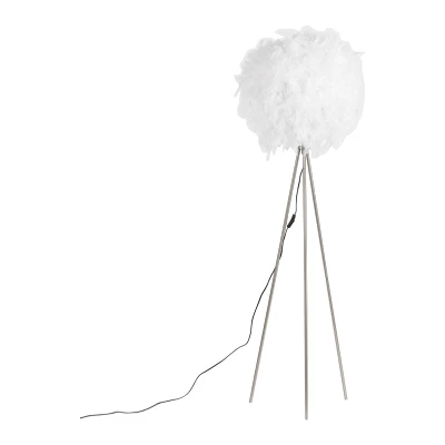 General description With this striking floor lamp decorated with feathers, you immediately have a beautiful eye-catcher in your home! This lamp creates an atmosphere even when it is not switched on, and it emits a warm white light when illuminated. The lamp is also dimmable with an external dimmer (dimmer not included), allowing you to adjust the brightness to your preference. Technical specifications Height: 155 cm Cord length: 90 cm Bulb holder: E27 Max wattage: 1 x 40 W Voltage: 220V/230V Protection class: IP20 Compatible with: Incandescent, Halogen, LED, Energy saving bulbs Usage This lamp is suitable for various living spaces, including the dining room, hallway, kitchen, bedroom, and living room. It is designed to enhance the ambiance of your home. Other information