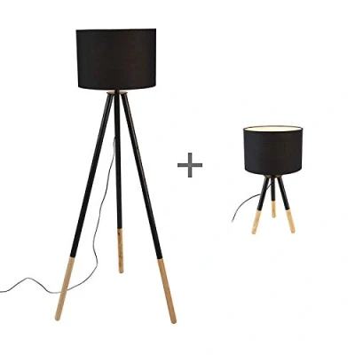 General description A super fun combo, this Pip table and floor lamp fits perfectly in your study or living room. The black color with the wooden legs gives your home a modern, soft look. Brighten up your home with this Pip floor and table lamp! Technical specifications Floor lamp height: 155 cm Table lamp height: 56 cm Table lamp lampshade diameter: 30 cm Bulb holder: E27 Max wattage: 1 x 40 W Voltage: 220V/230V Protection class: IP20 Dimmable: Yes (dimmer not included) Suitable for: Incandescent, Halogen, LED, Energy saving Compatibility and accessories Light sources are not included; please order separately. Usage Suitable living spaces: Indoor lights, Dining room, Hallway, Kitchen, Bedroom, Living room. Other information