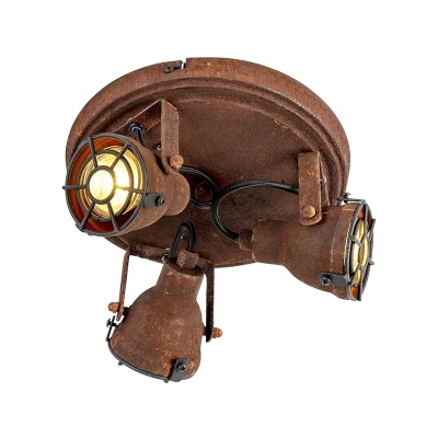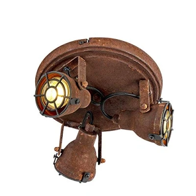 General description A rustic spot light, ideal for an industrial interior! The rust brown color gives this lamp an industrial look, making it a great addition to hallways or living rooms. Spots are perfect for illuminating dark corners of the house. Technical specifications Total height: 14 cm Diameter: 21 cm Mounting plate diameter: 21 cm Bulb holder: GU10 Maximum wattage: 3 x 25 W Voltage: 220V/230V Protection class: IP20 Light source: Exclusive Compatibility and accessories Suitable for: Halogen, LED Dimmable: Yes (dimmer not included) Connection: Without cord and plug Installation Can be hung on the wall or ceiling Usage Suitable for indoor spaces: Dining room, Hallway, Kitchen, Bedroom, Living room Other information
