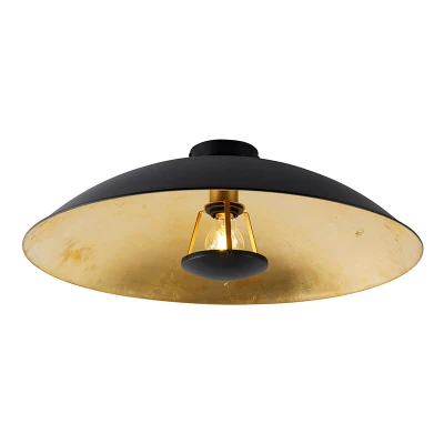General description This Vintage Ceiling Light in Black with Gold finish is a stunning addition to any interior. It provides beautifully distributed warm light, making it perfect for both basic and mood lighting. The Emilienne Novo Ceiling Light adds a vintage touch to your space, enhancing its overall aesthetic. Technical specifications Height: 20 cm Diameter: 60 cm Mounting plate height: 2.5 cm Mounting plate diameter: 10.5 cm Bulb holder: E27 Maximum wattage: 1 x 60 W Voltage: 230 V Connecting voltage: 220V/230V Protection class: IP20 Dimmable: Yes (dimmer not included) Light source: Exclusive Compatibility and accessories Compatible with incandescent, halogen, LED, and energy-saving bulbs External dimmer required for dimming functionality Usage This ceiling light is suitable for various living spaces, including the dining room, office/work area, kitchen, bedroom, store/showroom, and living room. Other information