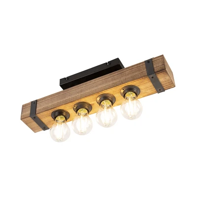 Qazqa Wood Industrial Ceiling Lamp I Flush Light Reena Suitable for LED E27 4 Living Room Kitchen Bedroom