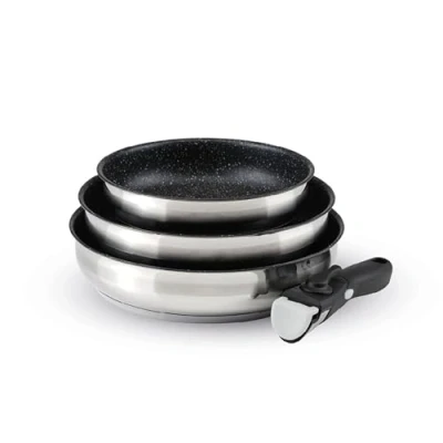 4 PIECE COOKWARE SET - There are 3 non-stick pans of 20, 24 and 26 cm plus a removable handle for convenience. The pans take up less space and are easily stackable for quick and efficient storage EXTRA NON-STICK PAN - The non-stick layer allows gentle cooking without or with very little fat. The coating allows food to slide easily and makes the pans extremely easy to clean REMOVABLE HANDLE - The handle can be removed and put back into place effortlessly at the touch of a button. This makes the pans perfect for the oven, microwave, refrigerator and dishwasher. So you gain space and practicality FAST AND EFFECTIVE HEAT DISTRIBUTION - The pans are made of high quality 18/8 stainless steel to ensure good thermal distribution and better heat distribution. You save energy during cooking COOKING TYPE & DURABLE CONSTRUCTION - These durable pans are suitable for all hobs, including induction. Don't have any doubts, besides being PFOA-free, you are sure that they will suit your cooking style, Weight: 6.7681914434 pounds, Manufacturer: Promeco