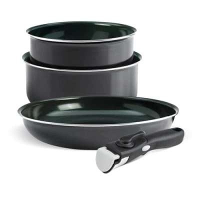 Contents: This set includes 2 saucepans 16/20 cm + 1 sauté pan 24 cm + 1 removable handle. High quality. Non-stick Ideal for a compact and efficient kitchen, suitable for all heat sources including induction. Stackable: Easy to store, space-saving. Compatibility: These high quality aluminium saucepans / pots / sauté pans are suitable for gas, electric, glass ceramic, induction and dishwasher safe. Perfect for the oven and fridge too. HEALTHY & CONVENIENT: An aluminium cookware with diamond-reinforced non-stick ceramic coating is 5x stronger and durable, 2x more non-stick, 4x heat diffusion. PFOA free: healthy cooking. Easy cleaning ERGONOMIC: A set with removable ergonomic handle made of heat-resistant ABS Bakelite. The handle snaps on and off with one easy move/move and can hold up to 10kg in one easy movement. Safe and durable: Top quality, with 5 year warranty. The removable handle is designed for safe use. The handle attaches and removes easily, ensuring a stable, comfortable and secure grip while cooking., Weight: 3.55826090868 pounds, Manufacturer: Promeco
