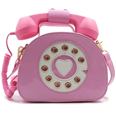 QiMing Retro dial telephone Crossbody Shoulder Bag,Pu Movable microphone Purse for Women
