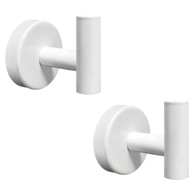 QNIIAED 2 Pcs Bathroom Towel Hook,Screw in Metal Coat Robe Hook SUS 304 Stainless Steel Heavy Duty Wall Door Hanger for Kitchen Garage Home Hotel Office(White)