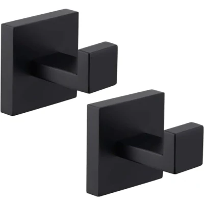 QNIIAED 2 Pcs Square Bathroom Towel Hook,Metal Coat Hook Wall Mounted Robe SUS 304 Stainless Steel Heavy Duty Door Hanger Screw in for Bedroom or Kitchen(Matte Black)