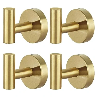 QNIIAED 4 Pcs Bathroom Towel Hook,Screw in Metal Coat Robe Hook SUS 304 Stainless Steel Heavy Duty Wall Door Hanger for Kitchen Garage Home Hotel Office(Brushed Brass Gold)