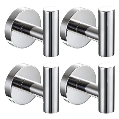 QNIIAED 4 Pcs Bathroom Towel Hook,Screw in Metal Coat Robe Hook SUS 304 Stainless Steel Heavy Duty Wall Door Hanger for Kitchen Garage Home Hotel Office(Chrome)