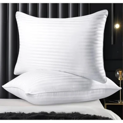 Balanced comfort - The filling of the cushion is made of high-quality fibres that provide a good balance of soft suppleness and plump strength. The pillow has enough support and is perfect for sleeping on the back, side or stomach ALWAYS FLUFFY The pillow is wrapped with a generous amount of breathable and heavy duty 7D premium hollow fiber that prevents flattening or clumping and keeps it plump all night long COZY & SILKY SLEEP Float to sleep with a cozy, fluffy feel you won't get enough of. Soft, lightweight premium fibers provide a huggingly soft experience for a restful sleep WHAT YOU GET: 2 Pack Hotel Collection Bed Pillows. Contact us if you have any quality problems, and we will reply within 24 hours Tips for washing the pillow: 1. Wash on a gentle cycle with cold water. 2. Dry flat on a well-ventilated area