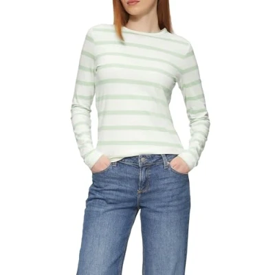 QS Slim Crew Neck Striped Shirt, Mint, S