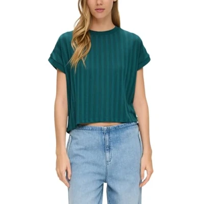 QS Women's 2144118 T Shirt with Pattern Structure, Petrol 6737, XS