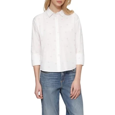 With loose fit With all-over print, cotton Woven fabric, poplin With shirt collar, with crew neck With 3/4 sleeves, with cuffs, the shoulders are overcut, with button placket