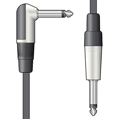 Unbalanced audio/guitar leads terminated at one end with a 6 3mm mono jack plug and at the other end with a right-angled 6 3mm jack plug