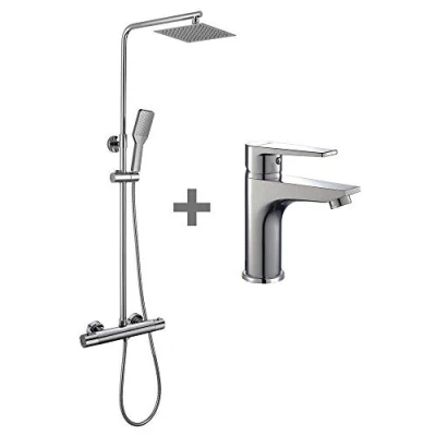 ✅ ERGONOMIC DESIGN - The shower column is specially designed for any user to use in a simple and comfortable way, the telescopic round tube has a diameter of 20 mm, and an adjustable extension ranging from 80 to 120 mm. Thermostatic taps the temperature of the thermostatic tap is calibrated to 38 degrees, from which you can raise or lower it until you find your exact point of comfort, ideal for those moments when you need to relax by combining the hand shower with the rain effect of the top sprayer, for example, at the end of the workday, the tap includes 2 levers: with one remote you can adjust the temperature and the flow rate and with the other can be switched between the top spray or the hose of the hand shower ✅ Safety first in daily use of the thermostatic tap with integrated selector, your safety and well-being of your family are the main thing for us, which is why in the thermostatic tap there is a safety button to prevent burns, scalds or other incidents related to temperature, in addition, the inside of the 200 cm flexible is anti-toxic with high resistance to temperature changes ✅ Includes tap and sink DEN. Sleek and elegant design. Combines flat and fine elements such as spout or handle with the rounded support tube, resulting in an elegant look. Gloss chrome finishes finish off the presence of the design and provide a soft and pleasant feel ✅ Simple installation will have no problem with installing your new bathroom basin tap. It has a high quality 40 mm cartridge and also includes a chrome base made of brass, the corresponding hoses and the m8 fittings, Weight: 11.0231131 Pounds, Manufacturer: KIBATH