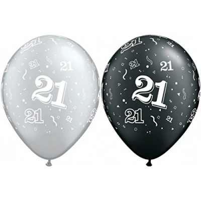 Qualatex 25065 21 A RND Balloons, Black/Silver, 11 Inch