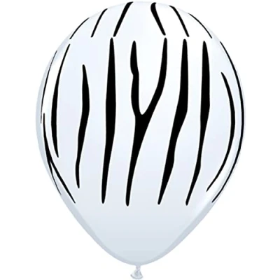 Qualatex 37044 Zebra Stripes White 11"/ 11 inch Round Latex Party Balloons (Pack of 25)