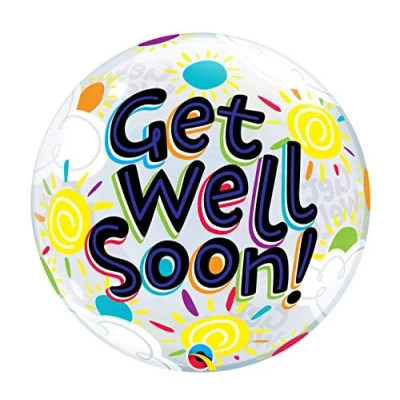 Qualatex 24906 Get Well Soon Smiling Face 22" Single Bubble Balloon