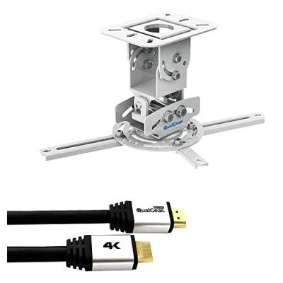 This bundle includes: 1. QualGear prb-717-wht universal projector ceiling mount and 2. QualGear HDMI Type a Male to HDMI Type a Male HDMI cable with Ethernet, 50' Black (qg-cbl-hd20-50ft) projector mount: QualGear prb-717-wht is the latest addition to projector mounts category. This brings most advanced features that are usually found in high end professional grade projector mounts but at a price point affordable to regular consumers. It lets you perform the following adjustments for a perfect projection: tilt: 0 to 60 degree. Hdmi cable: enjoy high-quality picture and pure audio by implementing the QualGear 50' (Feet) HDMI cable with Ethernet in your AV setup. This all-in-one video plus audio cable features 100% oxygen free copper (OFC), 28 AWG thick bare copper for higher bandwidths up to 18Gbps. It features 24K gold plated contacts for improved signal clarity. This HDMI cable is triple shielded for maximum protection from electromagnetic interference (EMI) and to achieve ultra-low signal to noise ratio (SNR). at 50' (Feet) in length, this cable is flexible and convenient when making connections. It features HDMI Type a Male connector on either end and plugs into any HDMI port. It works with a variety of devices, including ultra HD 4K TVs, a/V receivers, Blu-ray players, cable/ satellite boxes, gaming systems, Apple TV, Roku, computers and more Universal design fits most projector brands; Weight capacity: 30 lbs.; Supported range of mounting holes on projector: 6.6" - 16" Low profile flush mount; holds projector at 6" From the ceiling