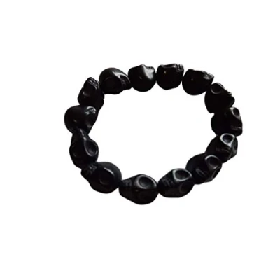Quality Carved stone Gothic skull Jewellery Bracelet, hand crafted howlite punk style elasticated by Fat catz copy (black bracelet)
