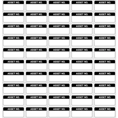 Quality control labels Asset number 250 Stickers 40mm x 20mm Remove backing film and apply to dry, smooth, oil free surface. Supplied in sheets of 25