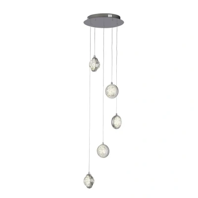 Quartz 5 Light Drop Pendant, Bubble Glass, Detailed Rim 4000K
