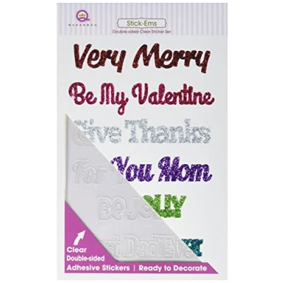 Queen & Co StickEms Clear Double Sided Stickers Holiday Sentiments, Acrylic, Multicoloured, 8.73 x 4.9 0.1 cm