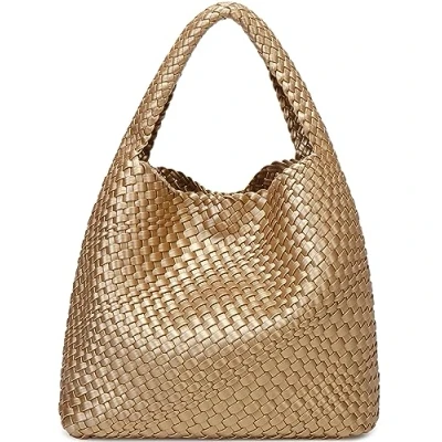 Queenoris Fashion Woven Purse for Women Top handle Shoulder Bag Soft Summer Hobo Tote Bag, Golden