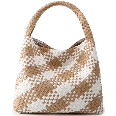 Queenoris Woven bag for women, Apricot and White Contrasting