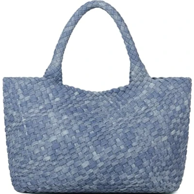 Queenoris Woven Bag for Women, Fashion Top Handle Shoulder Vegan Leather Shopper Large Travel Tote Bag, Denimblue, M