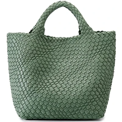 Queenoris Woven Bag for Women, Vegan Leather Tote Large Summer Beach Travel Handbag and Purse Retro Handmade Shoulder Bag, Bean Green