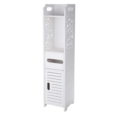 Queiting Bathroom Cabinet Corner Shelf Wooden Modern Cupboard Storage Toilet Tissue Paper Unit White