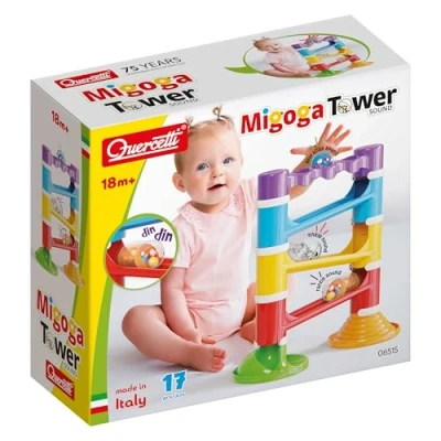 Quercetti Migoga Tower Set With Sounds, Track/Ramp Set, 3 Large Sound Marbles, Developmental Activity Toy for Babies and Toddlers 18 months+