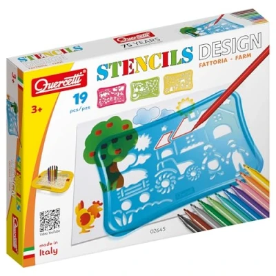A brand new stencil line made of unbreakable plastic with rounded edges. The new tracing outlines and the raised ridged external perimeter assure great precision in drawing and colouring The case has been designed with the same shape as the stencil plates so they can be neatly stored together with the markers provided The transparent lid with holes can be used as an extra stencil, and also doubles as a pen holder that can be positioned both vertically and horizontally The Stencil Design sets develop creative and artistic skills and are excellent to introduce your children to drawing. Included in each drawing set is a practical drawing album. Recommended for 4 years age and above - Develops creative and artistic skills, Manufacturer: Quercetti