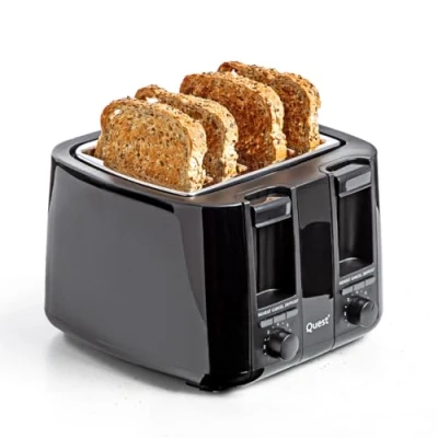 Quest 4 Slice Toaster with Wide Slots / 7 Browning Levels/Reheat & Defrost/Crumb Tray Cord Storage 1500W (Black)