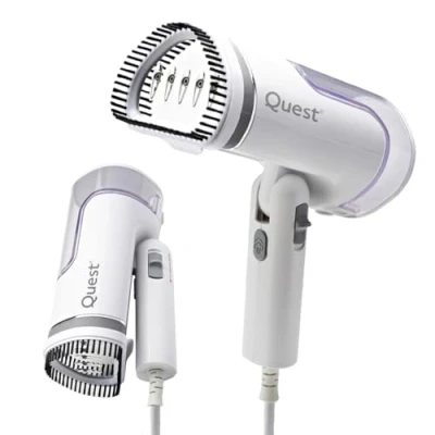 Quest 42149 Hand Held Clothes Steamer/Travel Steamer for Clothing, Curtains, Furniture & More / 1200W Power/Removable 130ml Water Tank/Foldable Design