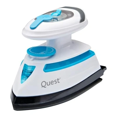 Currys- This Quest iron's 420 W of power is perfect for quick crease fixes on the go - Its 5 g/min steam shot helps ease out light wrinkles- The non-stick soleplate glides effortlessly over fabrics, making ironing a breeze - From satin dresses or to cotton shirts, the variable temperature takes care of every fabric- Its compact design means it won't take up much space in your suitcase - With dual voltage, it's ready for both home and holidays