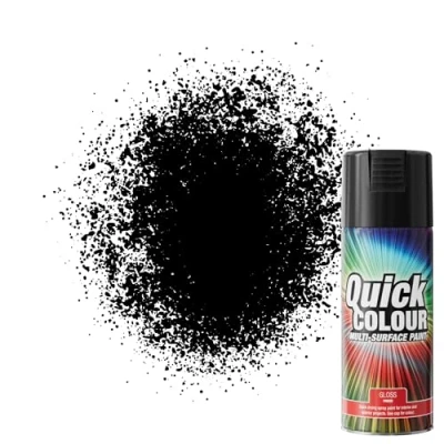 Quick Colour Black Gloss Spray Paint 400ml Aerosol for Wood, Plastic, Metal, Brick, Concrete and Vinyl