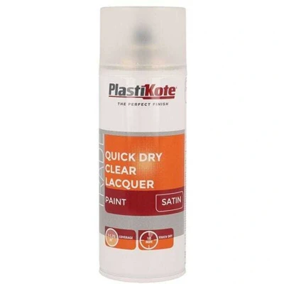 General description The PlastiKote Trade Quick Dry Clear Lacquer Spray in Satin finish is designed for quick application and provides a durable, scratch-free, and wear-resistant coating. Its quick-drying formula allows for touch dry results in approximately 10 minutes, making it ideal for various DIY projects. Technical specifications Finish: Satin Size: 400ml Coverage: 1 to 1.75 m² Type: Sealer Colour: Transparent MPN: 440.0071004.076 EAN: 8711347255191 Compatibility and accessories Suitable for use on wood, metal, plastic, and other surfaces requiring a satin lacquer finish Can be used with spray guns or aerosol applicators Installation Shake the can well before use Apply in a well-ventilated area, holding the can approximately 20-30 cm from the surface Apply multiple thin coats for an even finish, allowing each coat to dry for a few minutes Usage Ideal for sealing and finishing DIY projects, furniture, and decorative items Ensure surfaces are clean and dry before application Use in