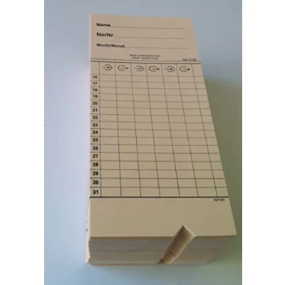 Monthly clock cards Double sided cards Cut on base of card for card side auto detection Can be used in a range of clocking in machines